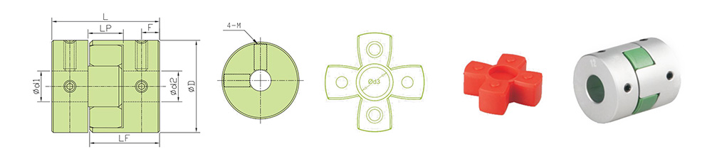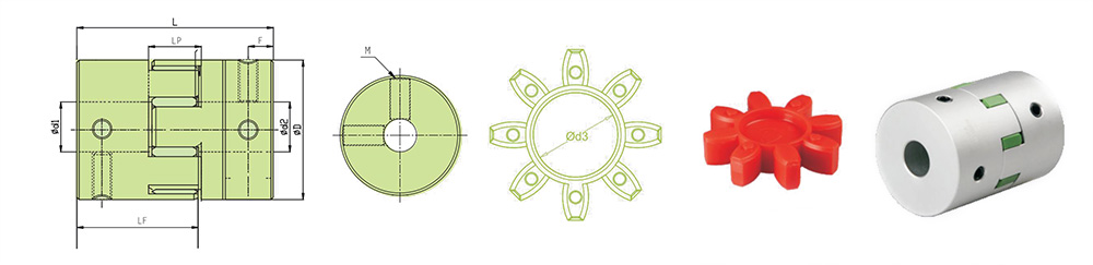 Intermediate elastomer absorbs vibration, compensates for radial, angularand axial deviations.