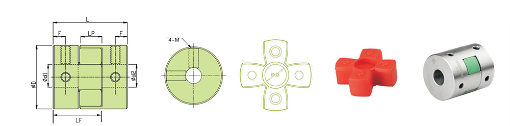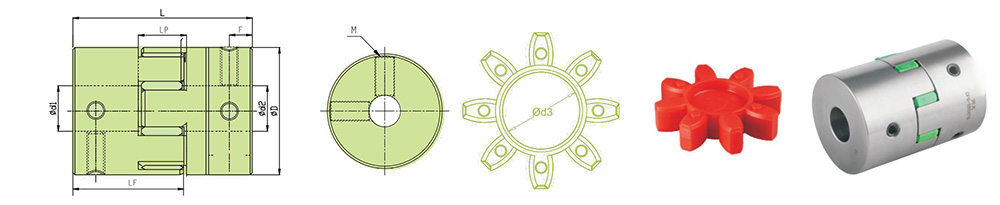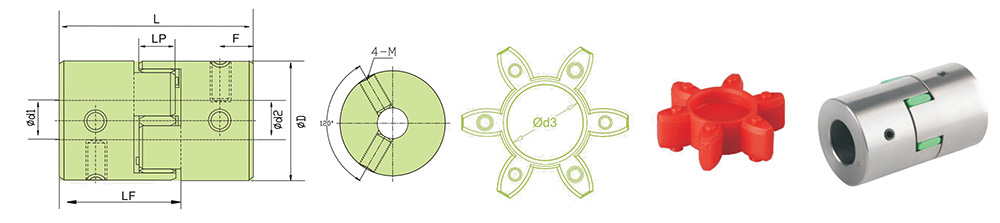 Intermediate elastomer absorbs vibration, compensates for radial, angular and axial deviations.