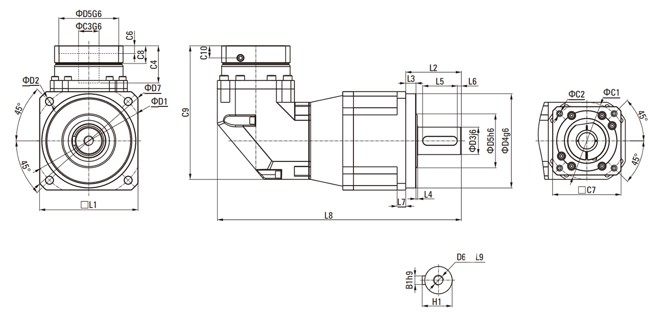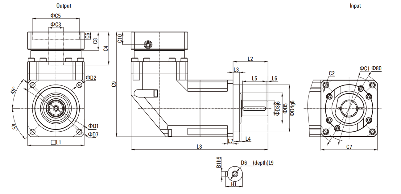 Dimensions (Single Stage, Reduction Ratio I=3~20)