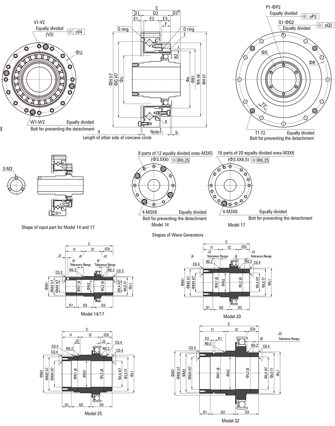 · The following dimensions can be modified to accommodate customer-specific requirements. Wave Generator: C Flexspline: 0 and P Circular Spline: X, and X₂. |