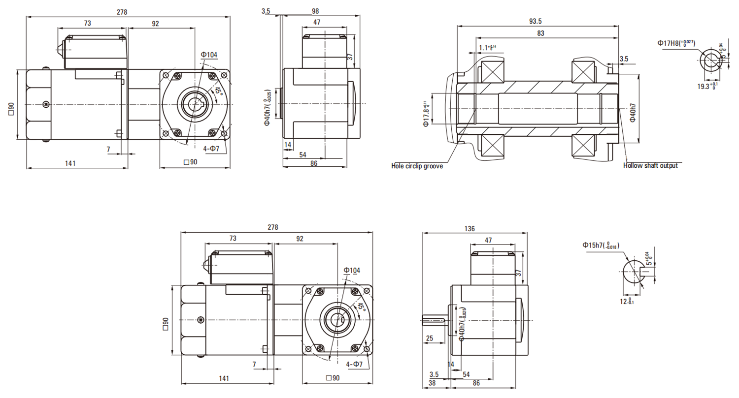 Model ·Type Upper:Pinion Shaft Below:Round Shaft |