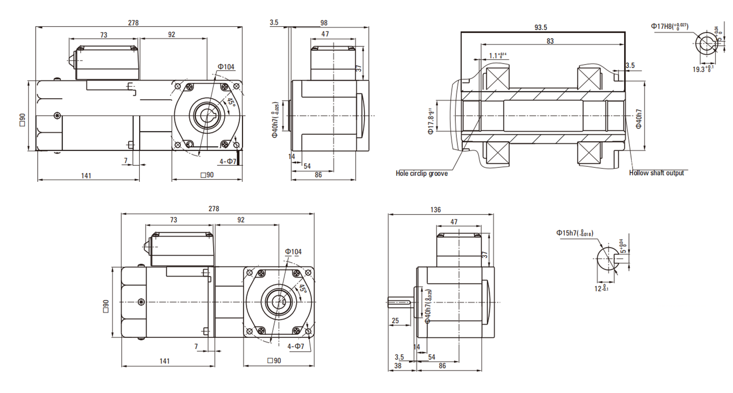 Model ·Type Upper:Pinion Shaft Below:Round Shaft |