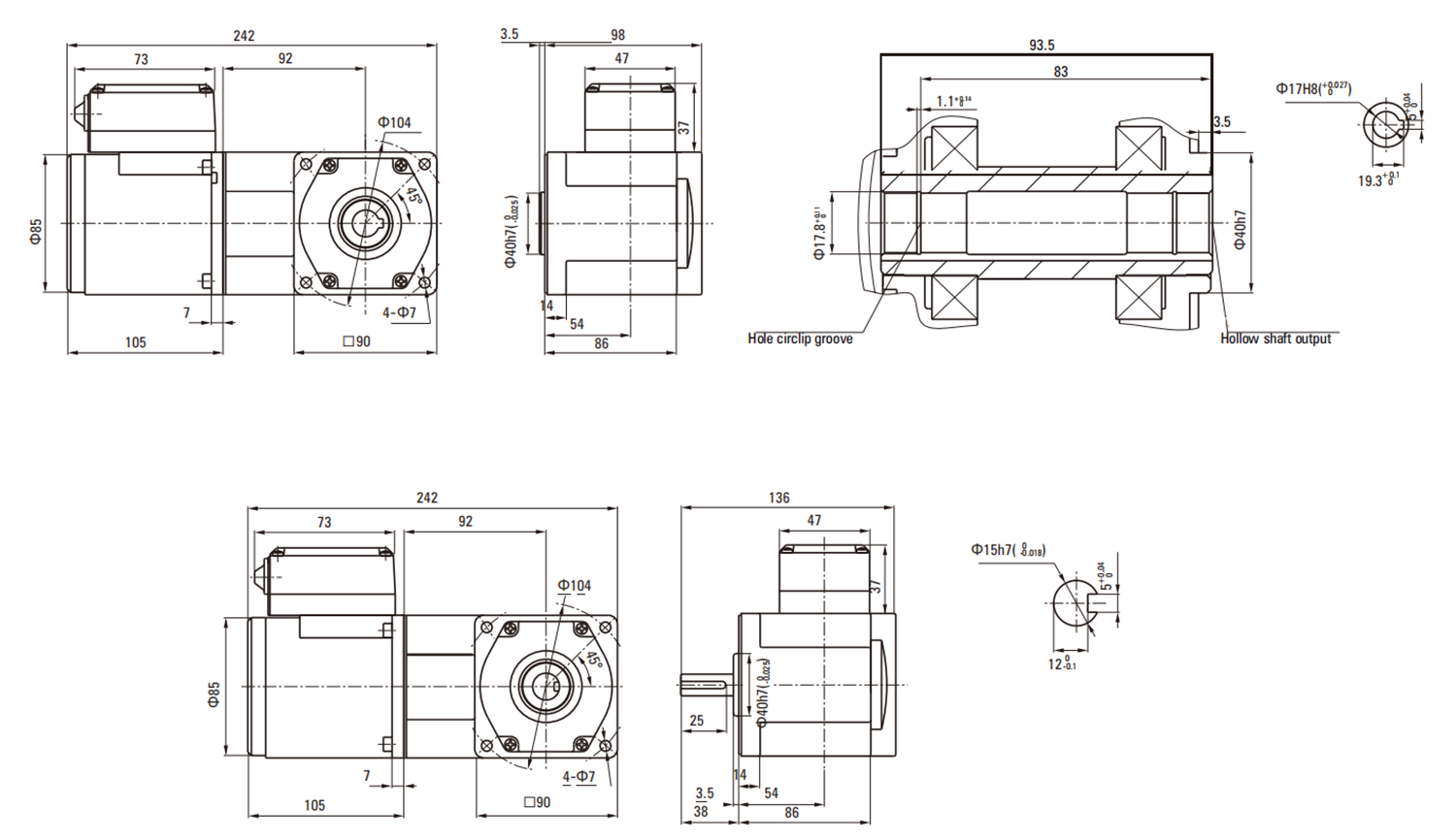 Model ·Type Upper:Pinion Shaft Below:Round Shaft |