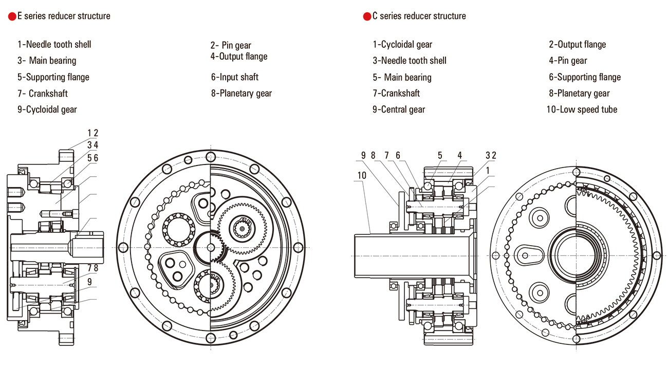 Note 1:E series, such as by the shell (pin shell)output, the corresponding reduction ratio by 1. |