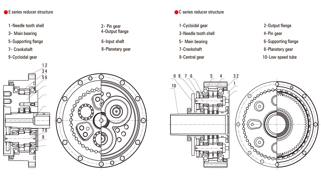 Note 1: E series, such as by the shell(pin shell)output, the corresponding reduction ratio by 1. |
